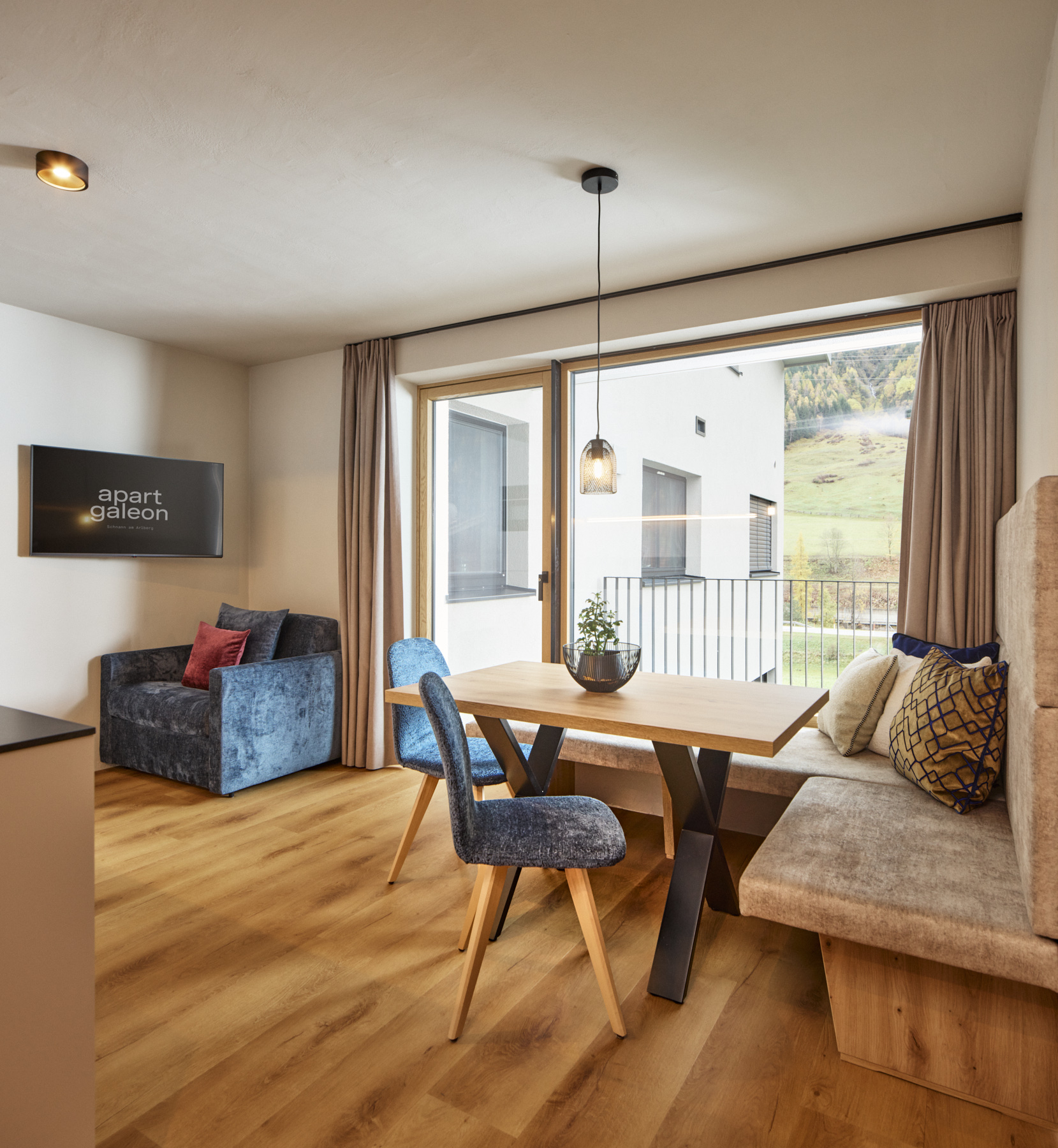 At Apart Galeon in Schnann am Arlberg we offer 2 apartments for 4-5 people each on approx. 50m2 of living space. One apartment has a spacious terrace, the other has a lovely garden - mountain views and plenty of peace and quiet are always included.